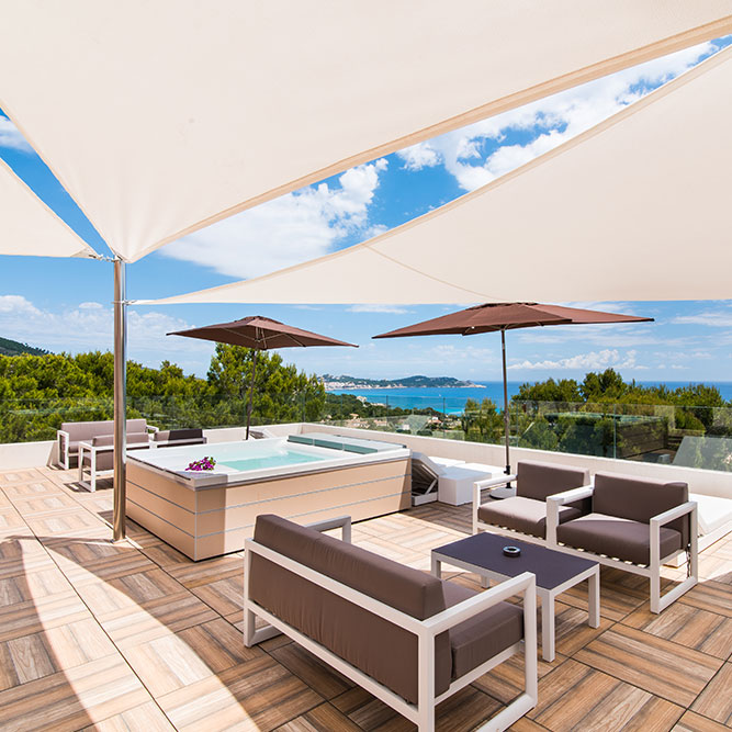 The Terrace double rooms (approx. 15-18 m²) like Economy double rooms but on the 2nd floor with a private terrace and sea view.