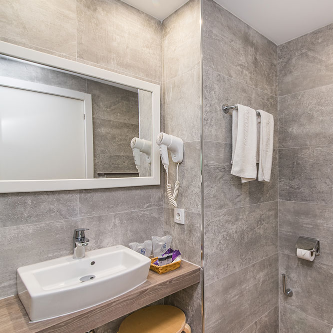 The Standard double rooms (approx. 15-18 m²) like Economy double rooms but on the 2nd/3rd floor with sea view or on the 4th/5th floor with mountain view.