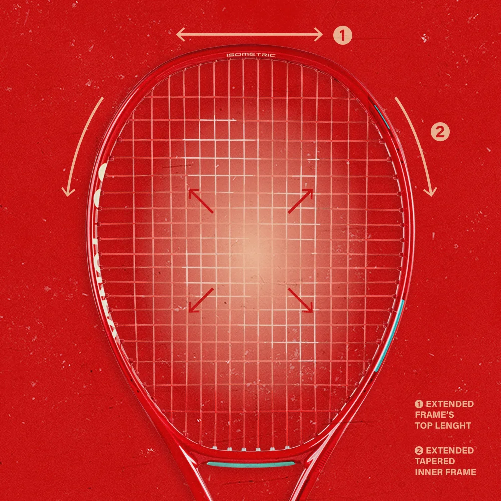 W porównaniu z tradycyjną okrągłą ramą, rakieta ISOMETRIC o kwadratowym kształcie ma o 7% większy punkt idealnego odbicia*. Dzięki temu rakieta jest bardziej wyrozumiała, co poprawia komfort gry.